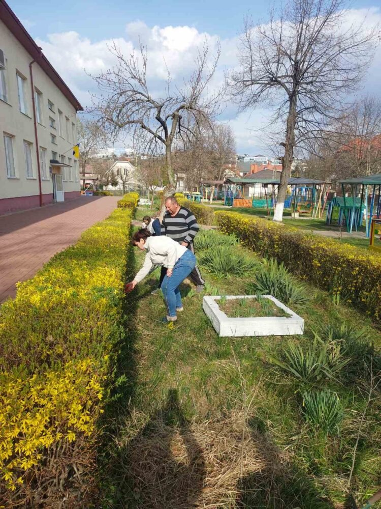 В рамці місячника благоустрою, наші колеги спільно з батьками наших вихованців, цього разу плідно попрацювали. Було очищено територію від сухого листя, гілля, що накопичилося за зиму; здійснено впорядкування квіткових клумб, обкопування дерев та кущів; огляд, фарбування дитячих ігрових майданчиків, очищення пісочниць.