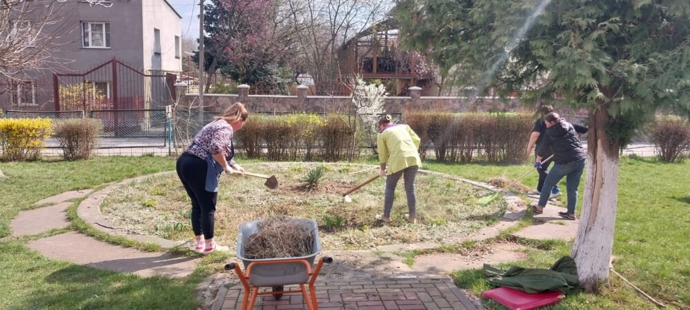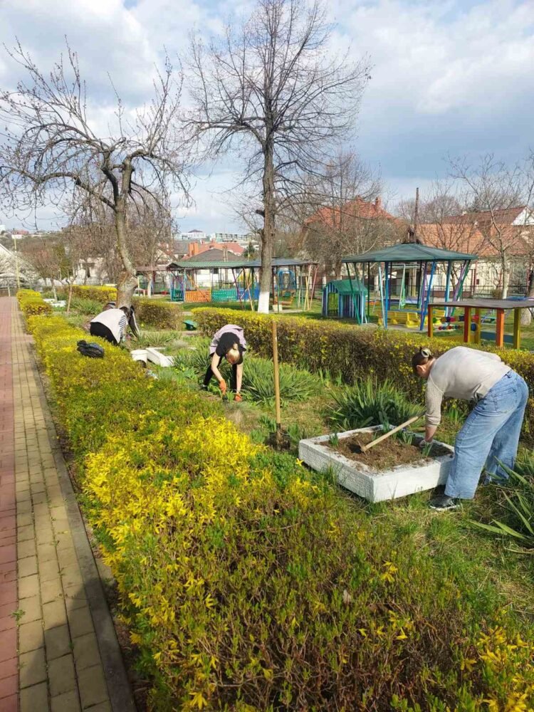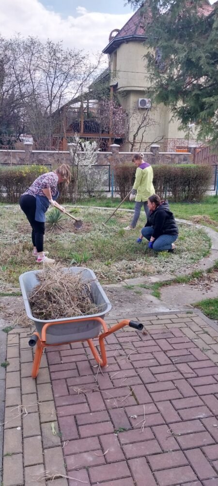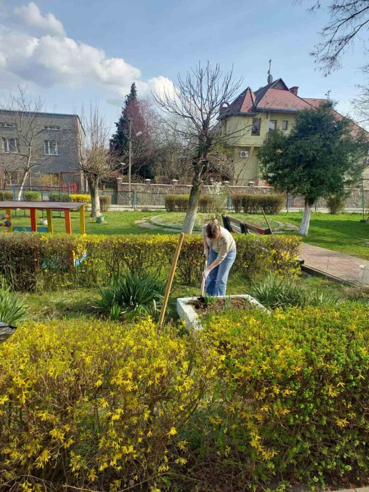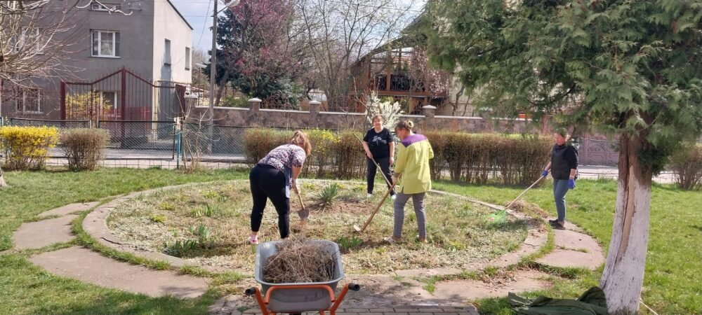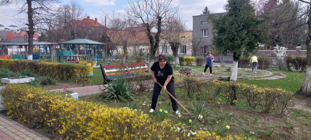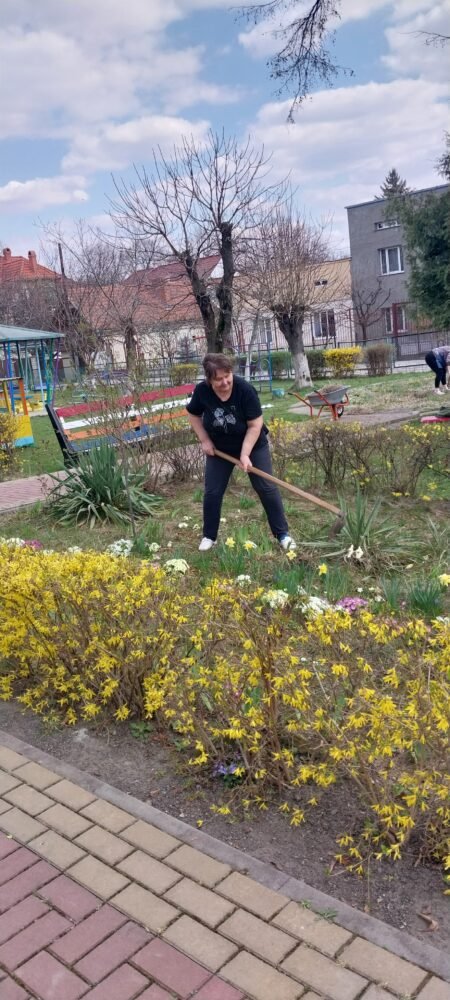 В рамці місячника благоустрою, наші колеги спільно з батьками наших вихованців, цього разу плідно попрацювали. Було очищено територію від сухого листя, гілля, що накопичилося за зиму; здійснено впорядкування квіткових клумб, обкопування дерев та кущів; огляд, фарбування дитячих ігрових майданчиків, очищення пісочниць.